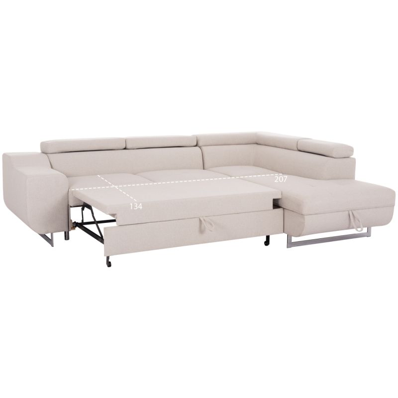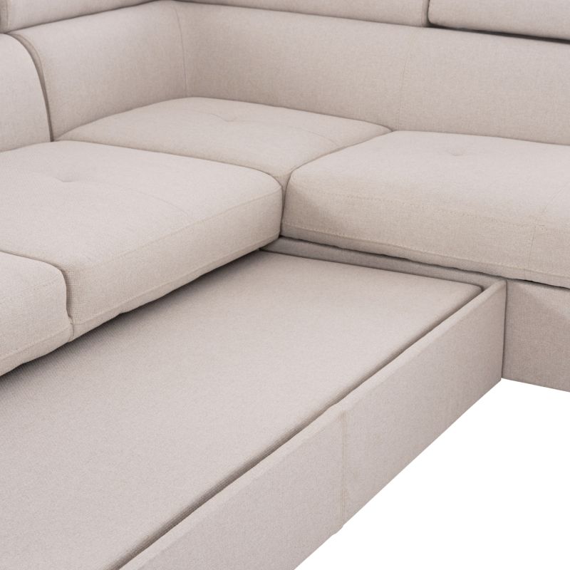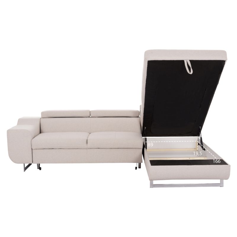CORNER SOFA-BED WITH STORAGE SPACE ENCORE HM3301.03R BEIGE FABRIC 285x205x90Hcm.
