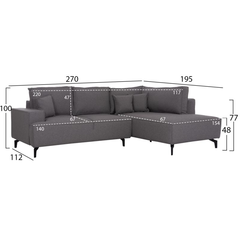 CORNER SOFA-BED WITH STORAGE SPACE SAFFIRA HM3303.01R GREY FABRIC 270x195x100Hcm.