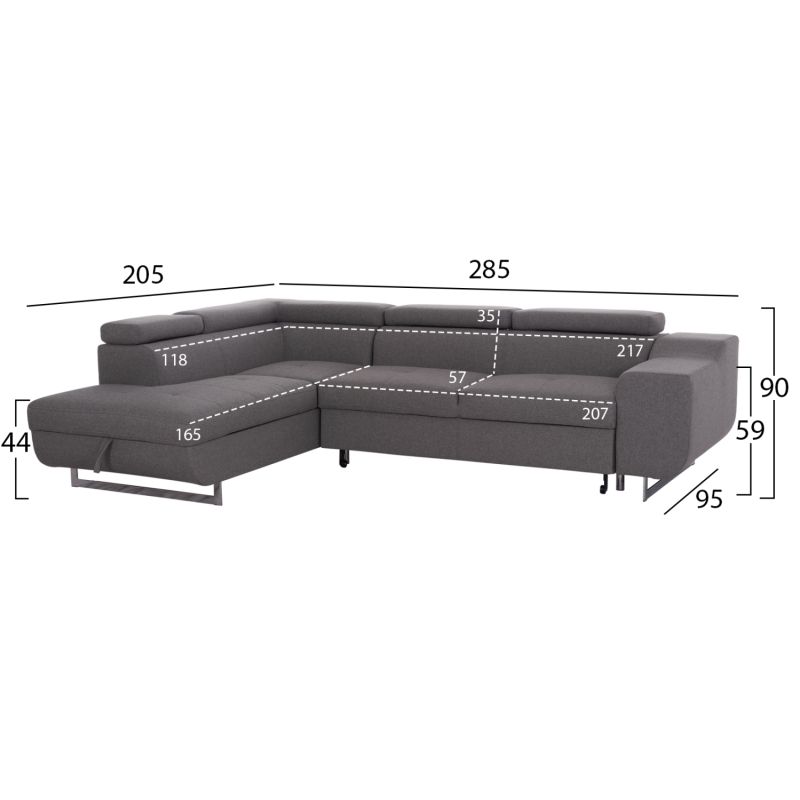 CORNER SOFA-BED WITH STORAGE SPACE ENCORE HM3301.01L GREY FABRIC 285x205x90Hcm.