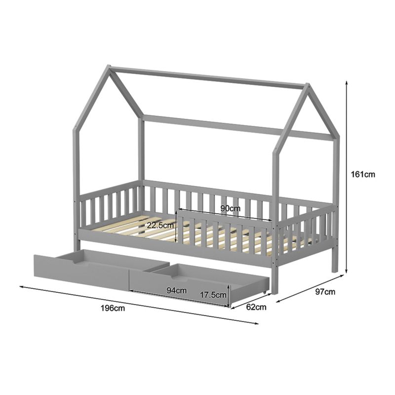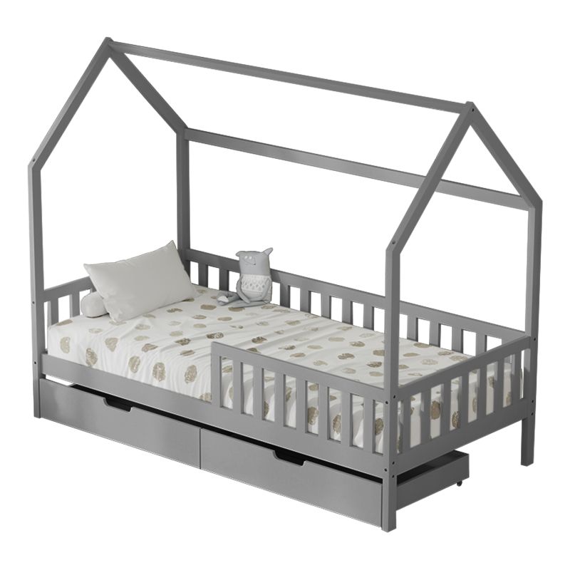 KIDS' BED WITH DRAWERS PHYLLIS HM724.05 PINE WOOD IN GREY 196x97x161Hcm.