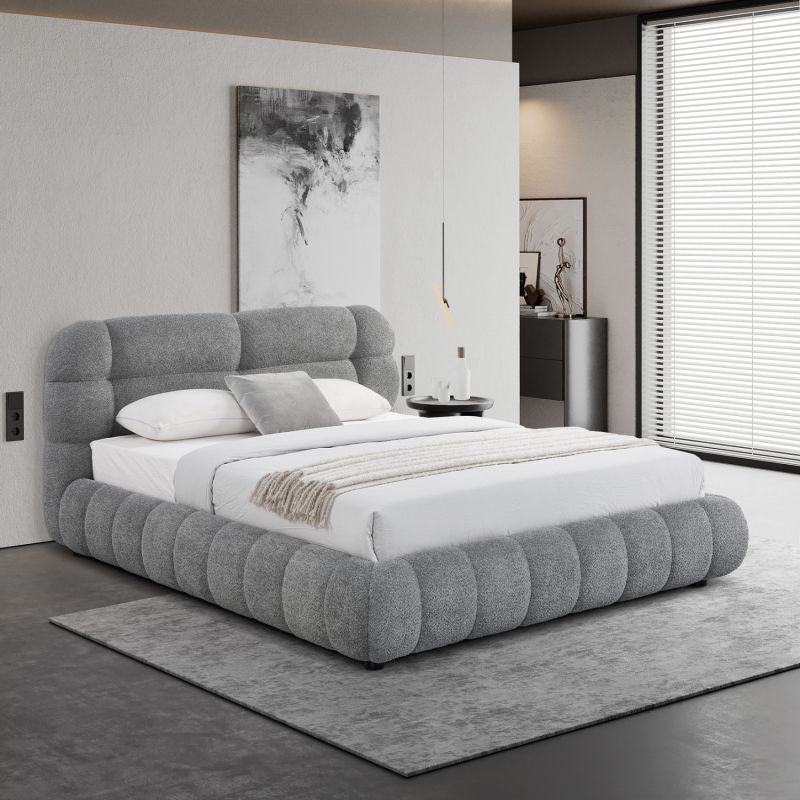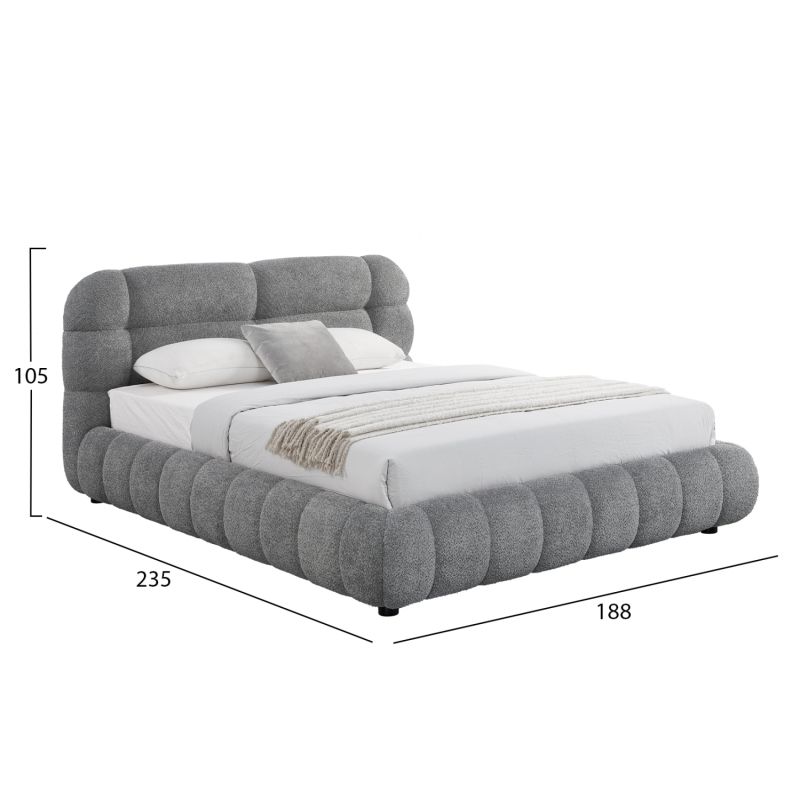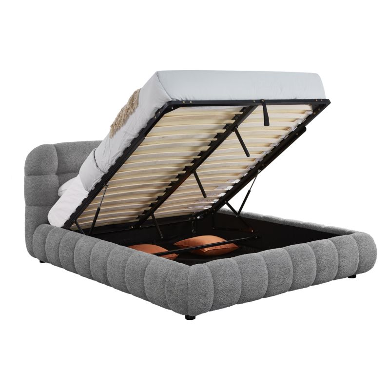 DOUBLE BED WITH STORAGE SPACE MOLEN HM730.01 GREY BOUCLE FABRIC--MATTRESS 160x200cm.