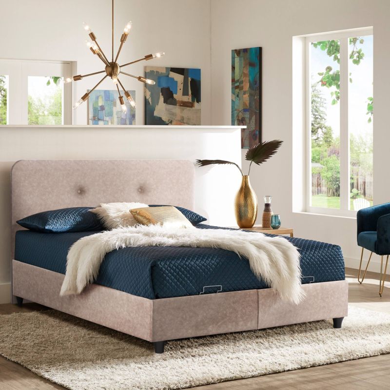 BED WITH MATTRESS DOUBLE DOLORES HM21165 BEIGE FABRIC & STORAGE SPACE--FOR 160x200cm