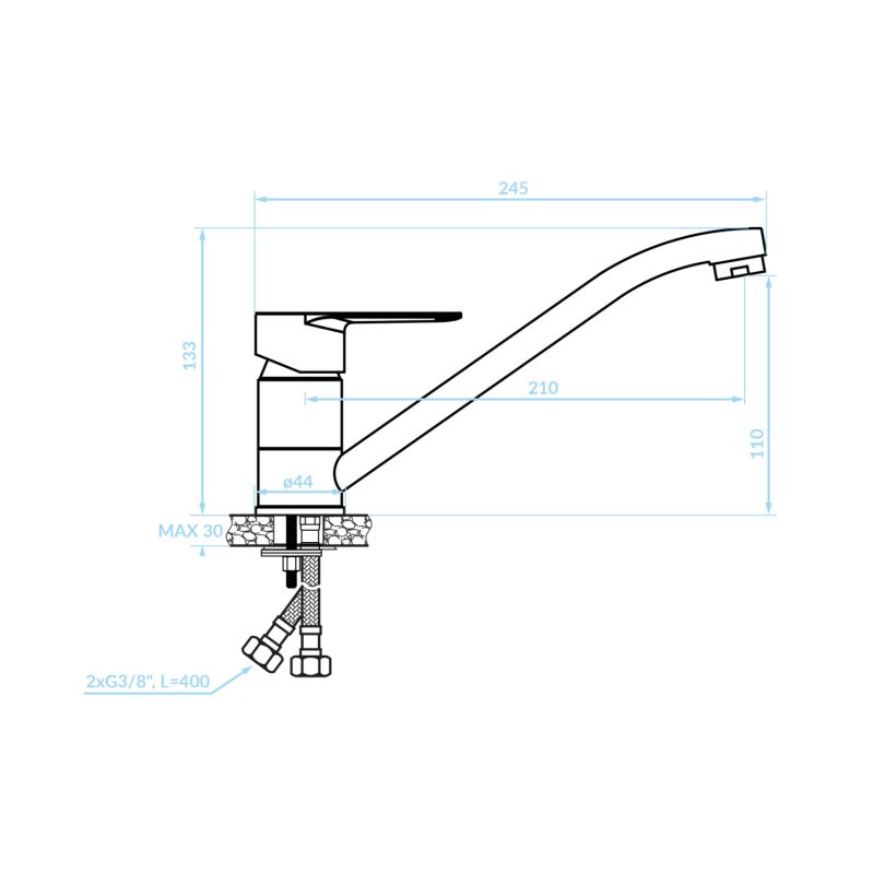 FAUCET FOR KITCHEN COUNTERTOP HM4865 LONG FAUCET SPOUT--CHROME--24.5x13.3Hcm.