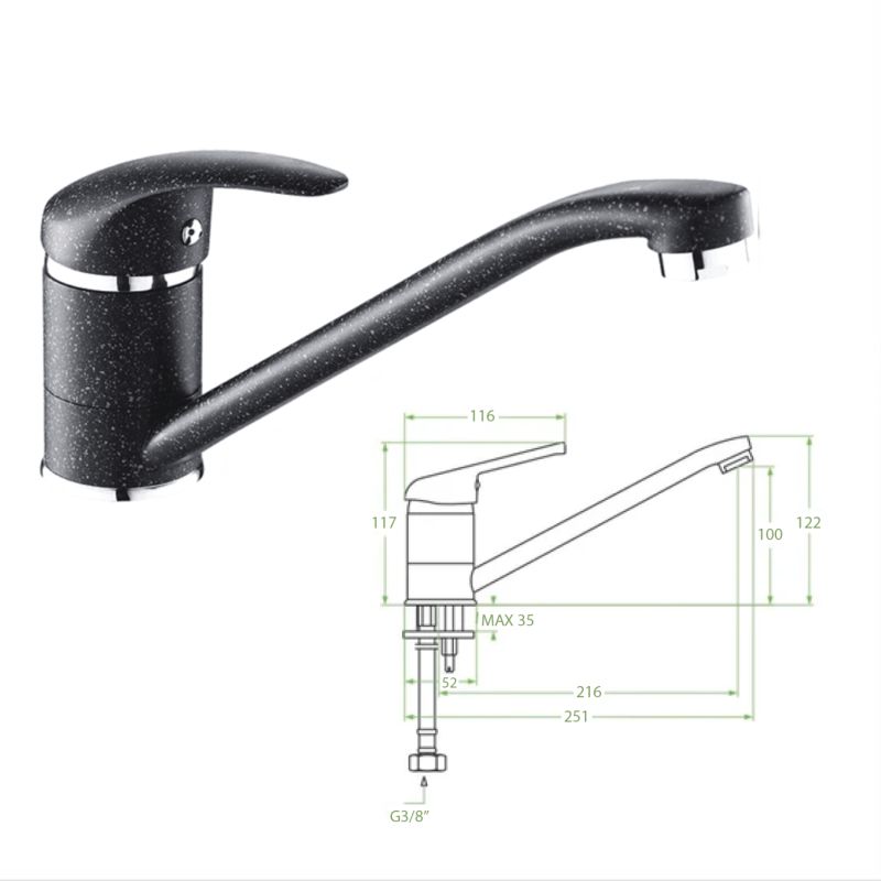 FAUCET FOR KITCHEN COUNTERTOP HM4869.03 LONG FAUCET SPOUT--BLACK GRANITE--25.1x12.2Hcm