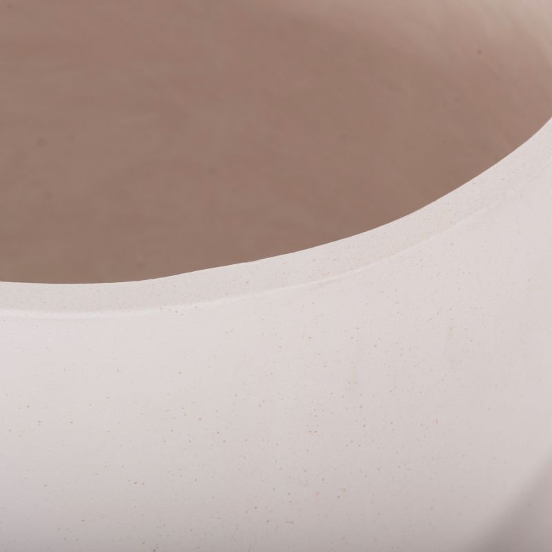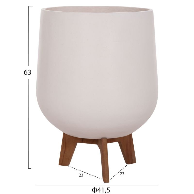 SET 3 POTS/VASES WITH TEAK BASES TRYLL HM4681.02 FIBER CEMENT IN WHITE