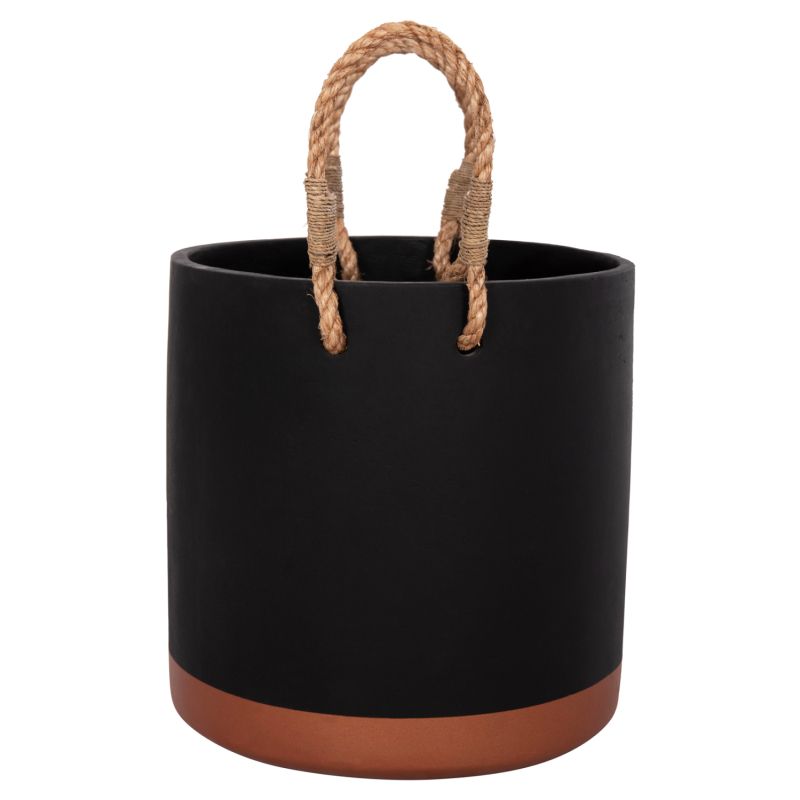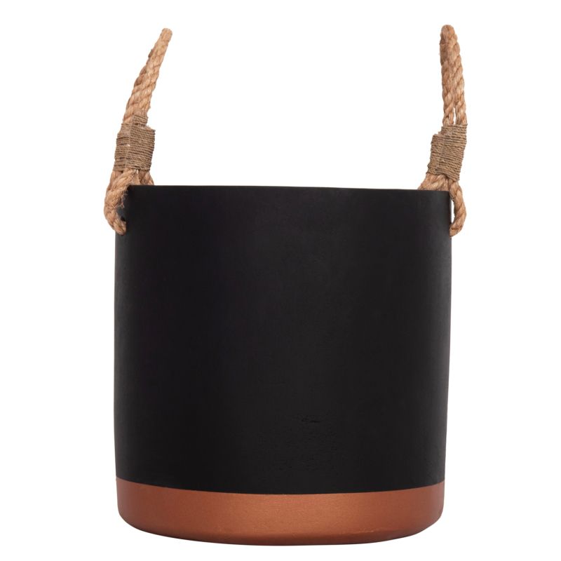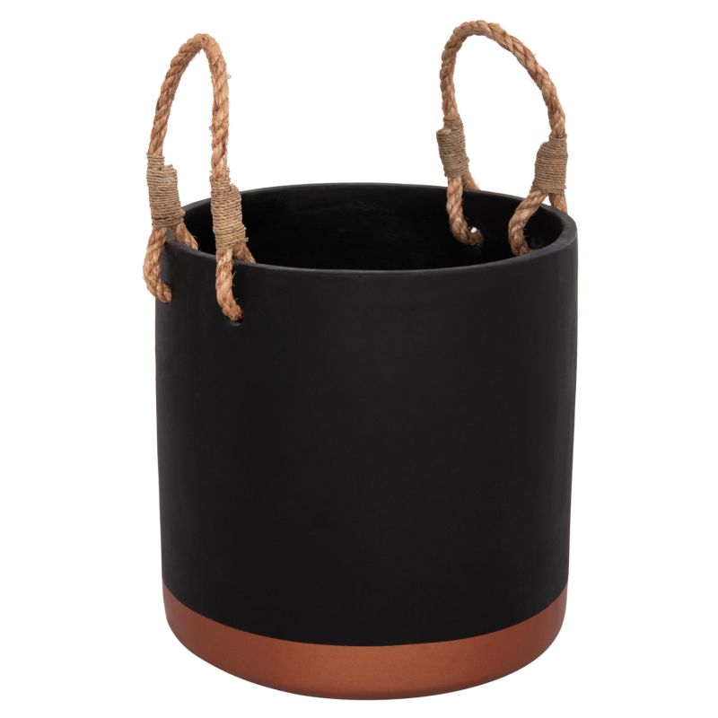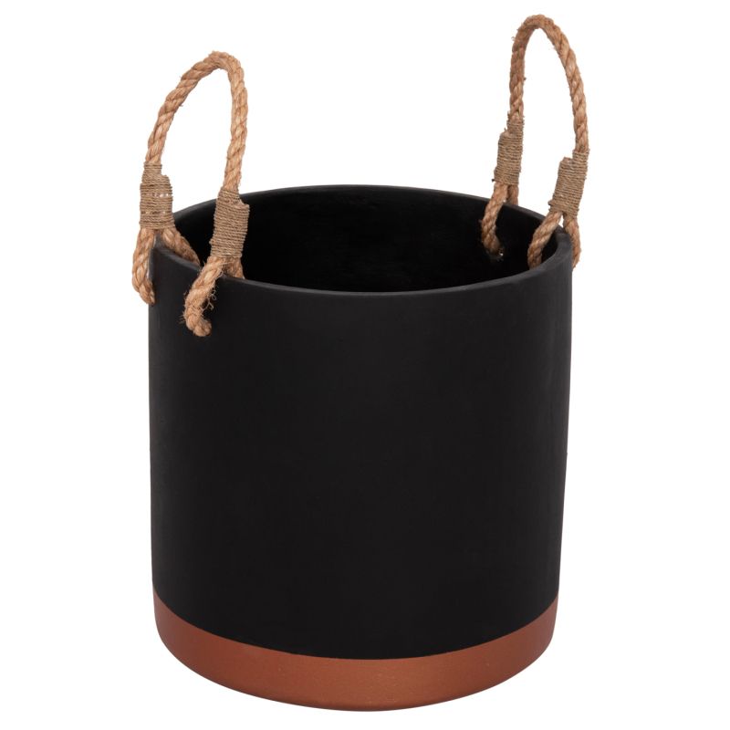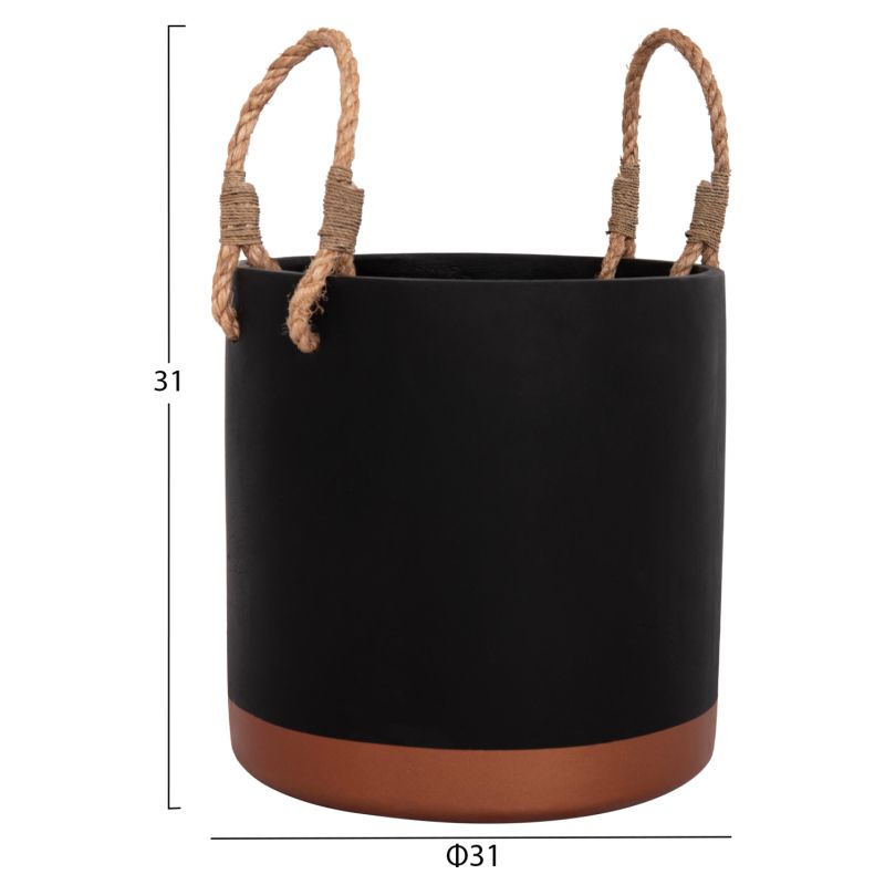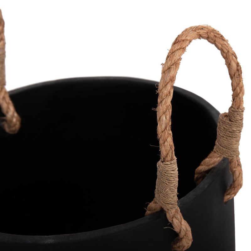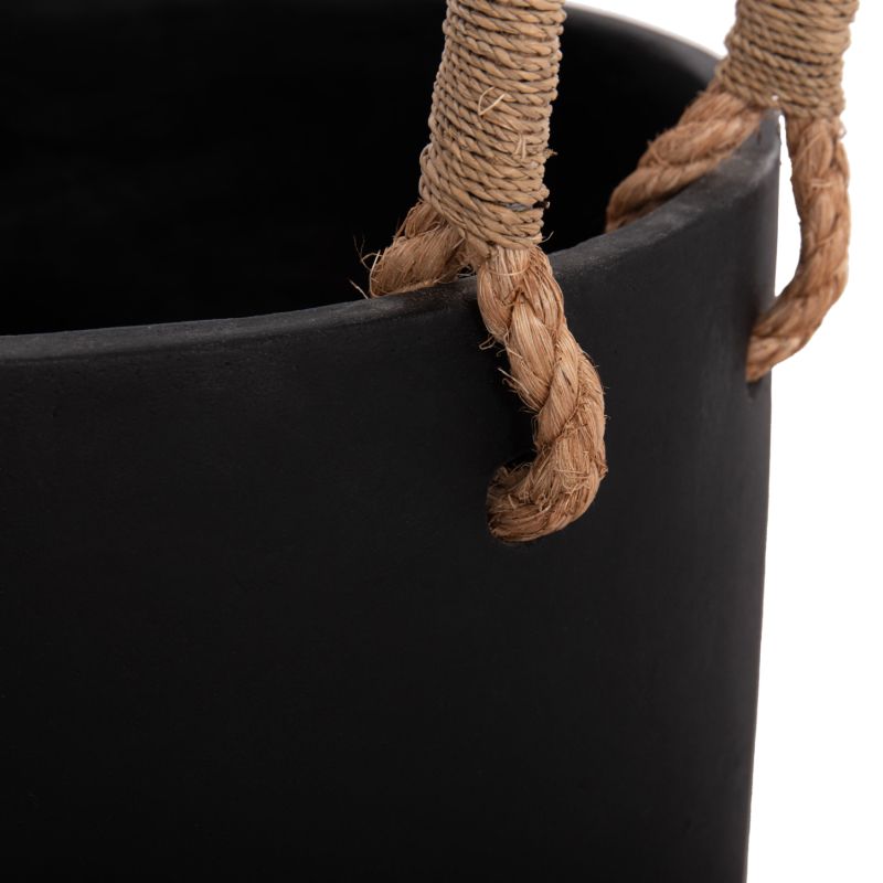 INDOOR PLANTER/POT SERIES TRYLL FB94690M FIBER CEMENT IN BLACK & ROPE Φ31x31Hcm.