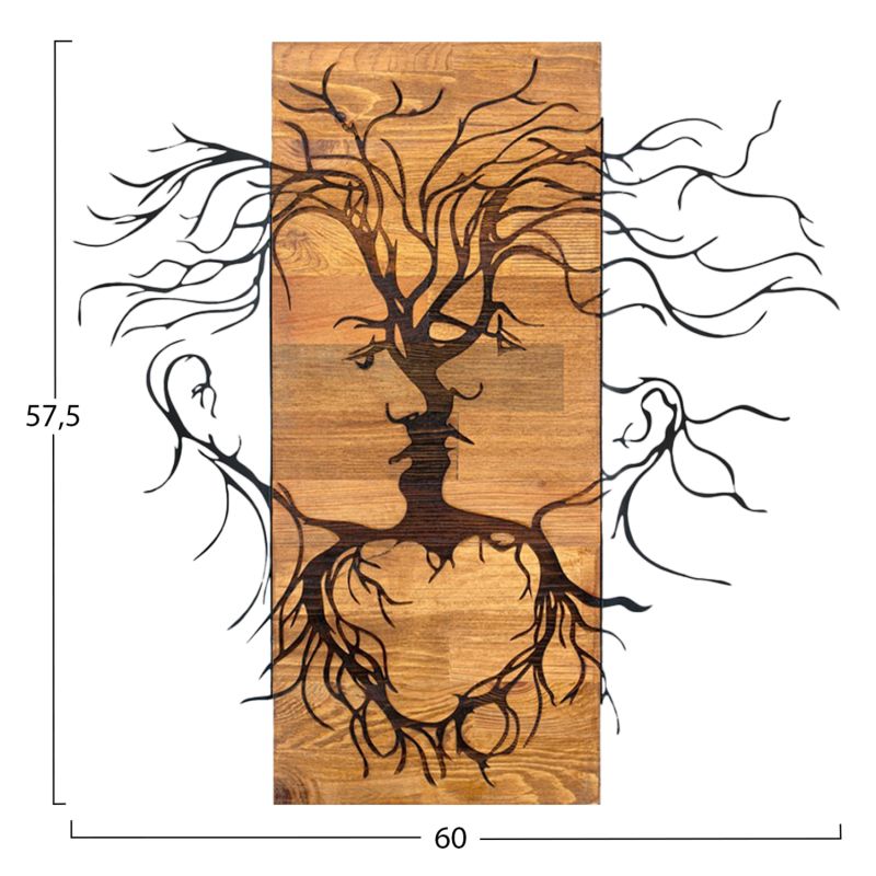 WALL DECORATION FACES HM4807-METAL IN BLACK-WOOD 60x3(thickness)x57.5Hcm.