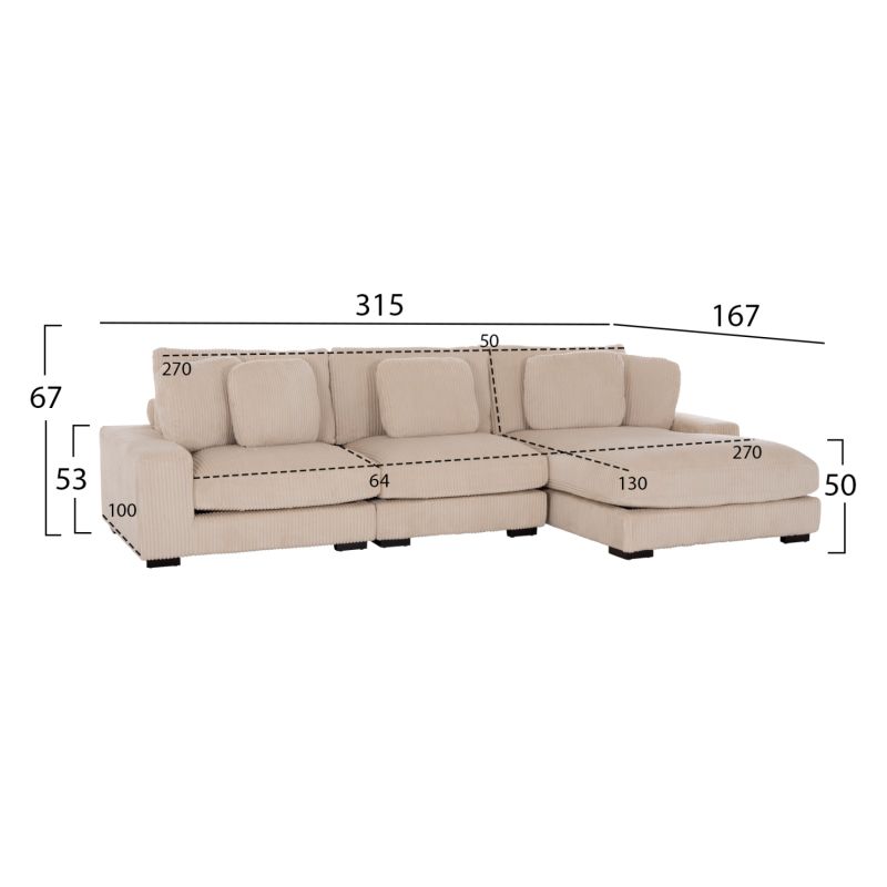 CORNER SOFA RIGHT CRANFIELD HM3287.02R BEIGE CORD FABRIC 315x167(corner)x67Hcm.