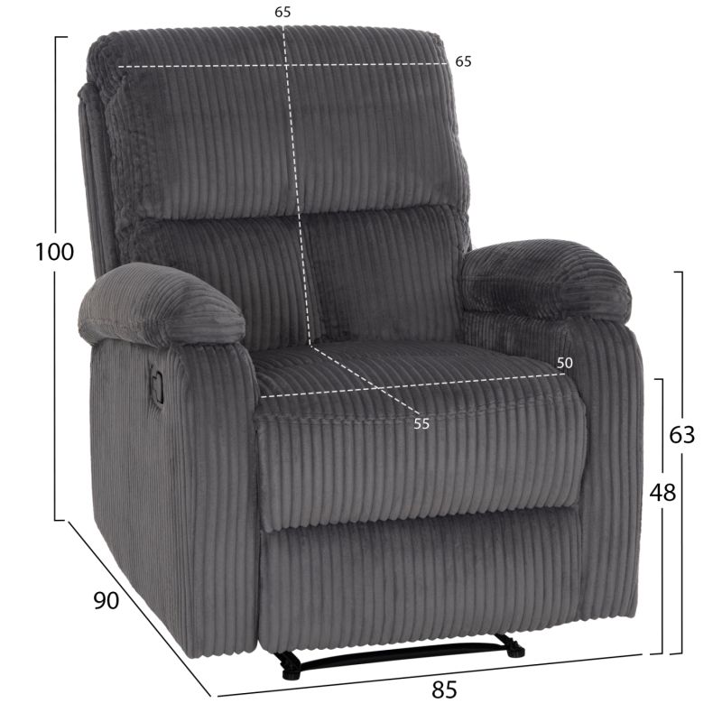ARMCHAIR RELAX DIONI HM3296.11 GREY CORD FABRIC 85x90x100Hcm.