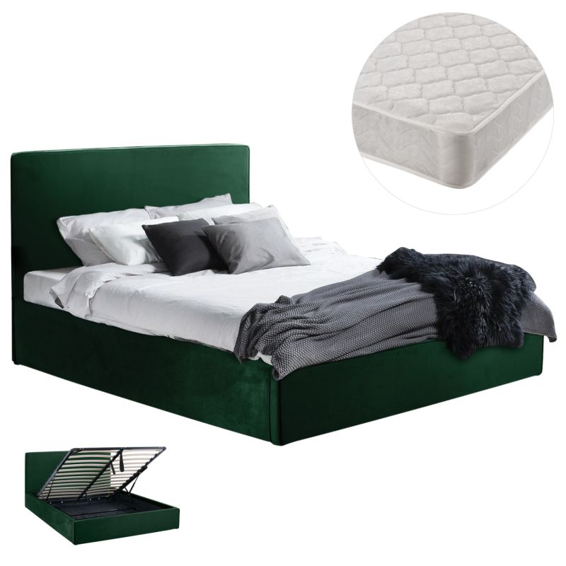 DOUBLE BED WITH MATTRESS ALLIE HM21273.03 CYPRESS GREEN VELVET WITH STORAGE SPACE--FOR 160x200cm.