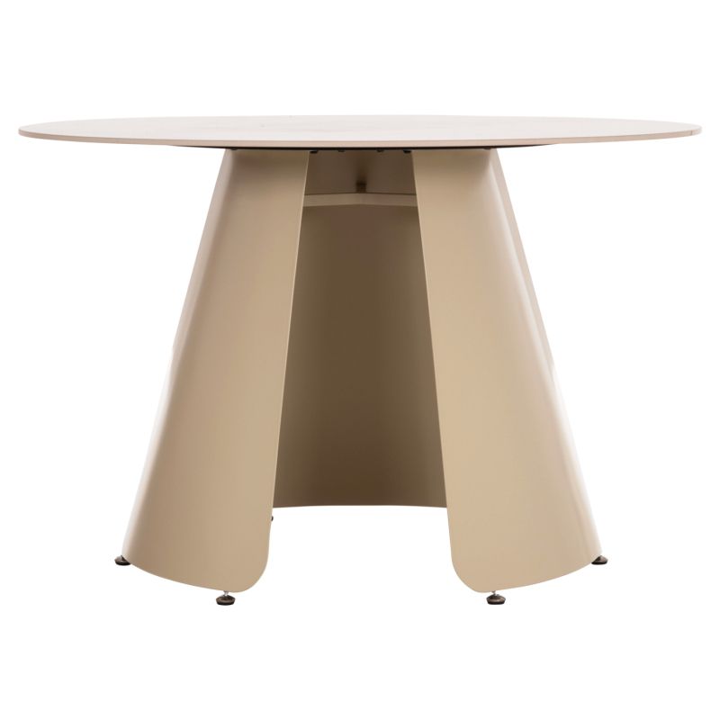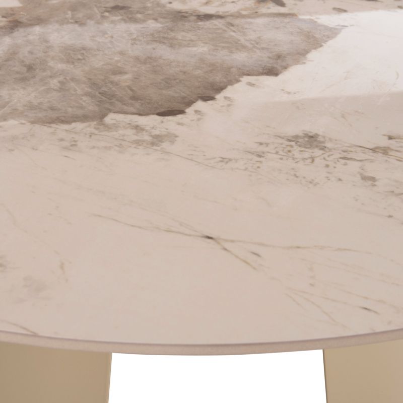 DINING TABLE ROUND SEDAR HM18326 CERAMIC TOP--CREAM WHITE METAL LEGS Φ120x78Hcm.
