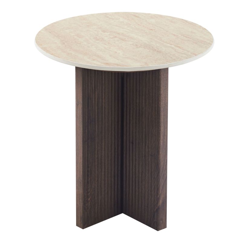 SIDE TABLE SKY HM18330 CERAMIC TOP WITH TRAVERTINE STONE LOOK--MDF BASE IN BROWN Φ45x50H