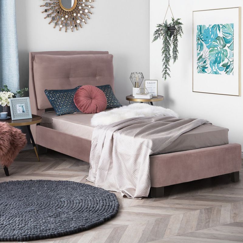BED WITH MATTRESS RILEY HM21282.02 DUSTY PINK VELVET--FOR MATTRESS 90x200cm