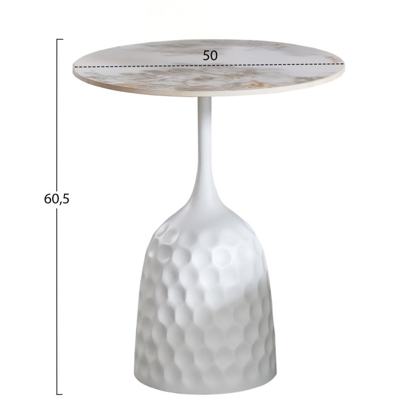 COFFEE TABLE LONGSTEM HM18317.01 WHITE METAL BASE--SINTERED STONE TOP IN CALACATA GOLD Φ50