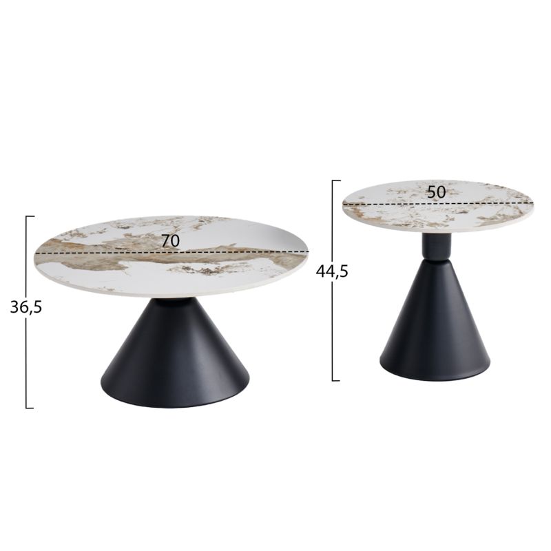 SET 2 COFFEE TABLES JEN HM18305.02 METAL IN BLACK-SINTERED STONE IN PANDORA COLOR Φ50cm & Φ70cm