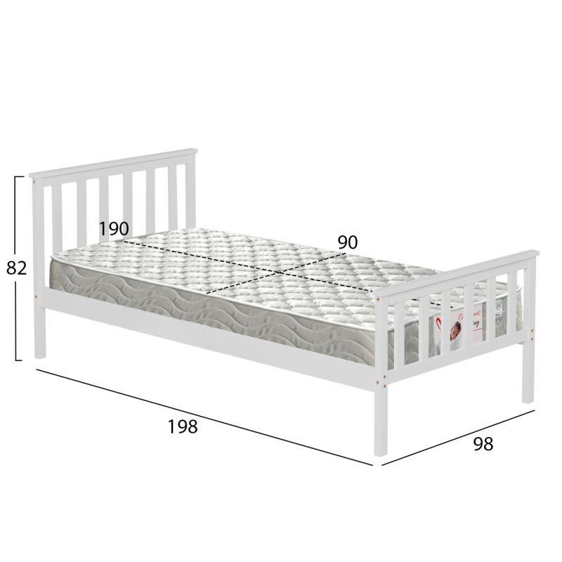 BED WITH MATTRESS GIMLY HM21300.01 PINE WOOD IN WHITE COLOR FOR MATTRESS 90x190cm