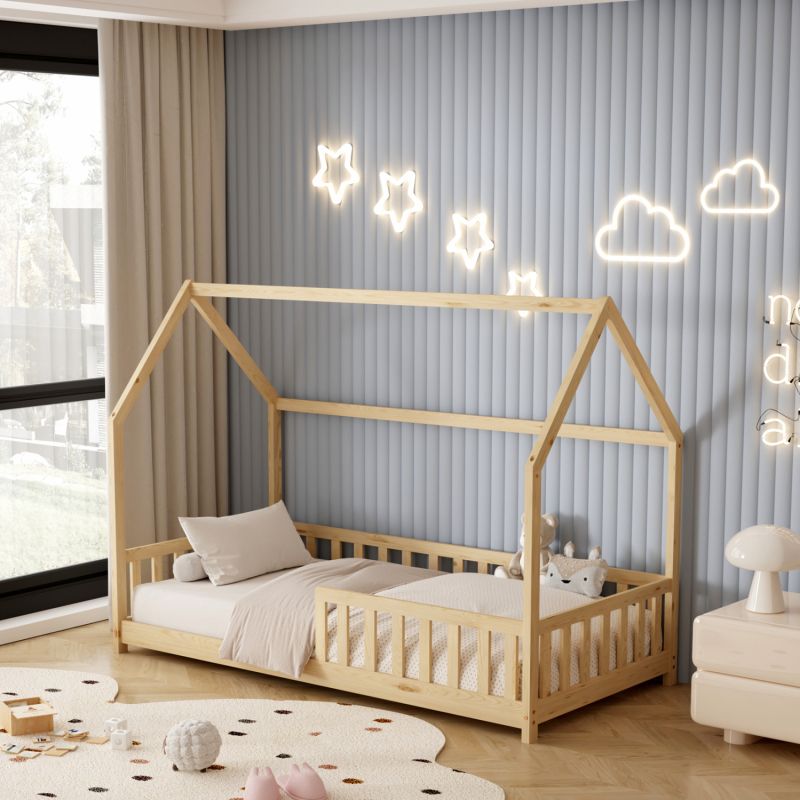 BED WITH MATTRESS PHYLLIS HM21304 PINE WOOD IN NATURAL WOOD COLOR--MATTRESS 90x190cm