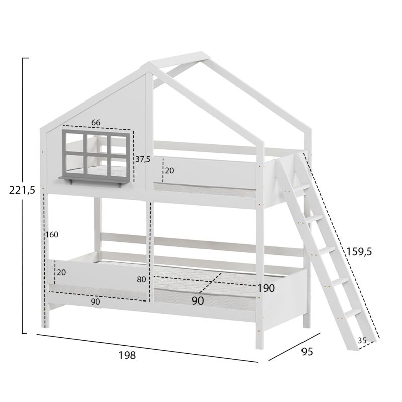 BUNK BED WITH 2 MATTRESSES COMBO HM21316 PINE WOOD IN WHITE--FOR MATTRESSES 90x190cm