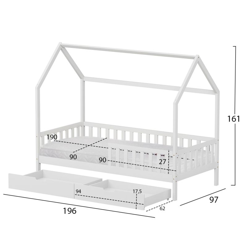 BED WITH DRAWERS PHYLLIS HM21324.01 PINE WOOD IN WHITE--WITH MATTRESS 90x190cm
