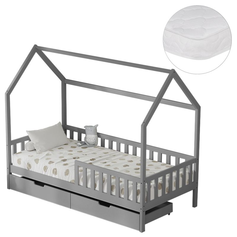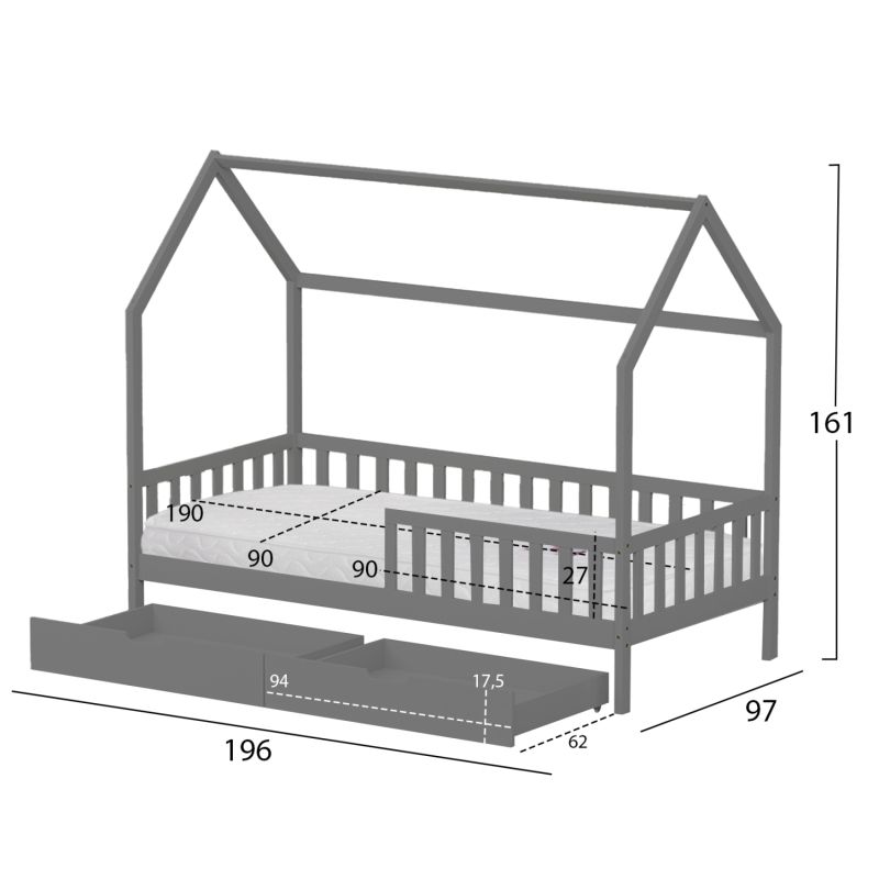 BED WITH DRAWERS PHYLLIS HM21324.02 PINE WOOD IN GREY--WITH MATTRESS 90x190cm