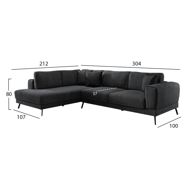 CORNER SOFABED (LEFT) ZENORA HM3337.01L DARK GREY FABRIC 303x214x80Hcm