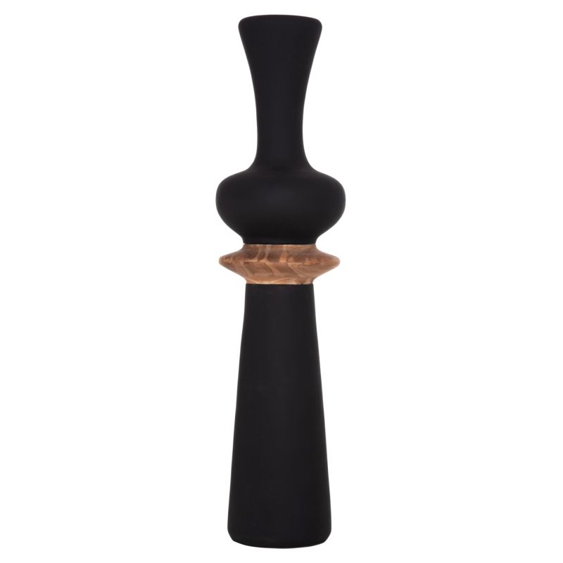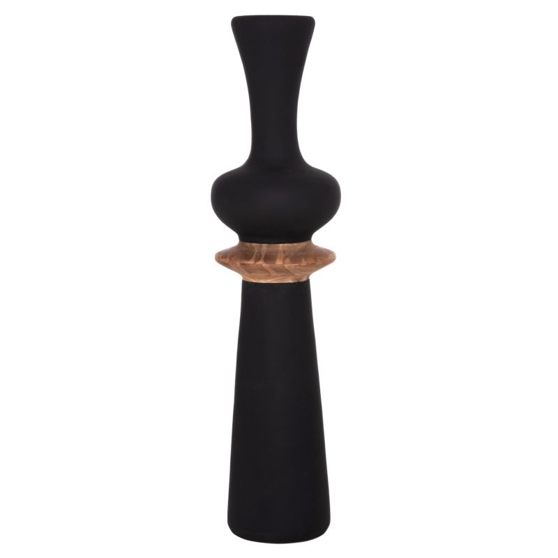 DECORATIVE FLOOR VASE NEBULA HM4660.01L FIBER CEMENT IN BLACK--TEAK WOOD Φ45x172Hcm.