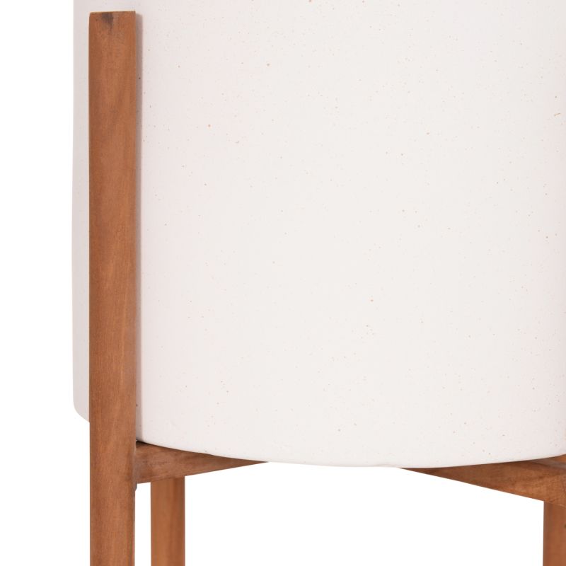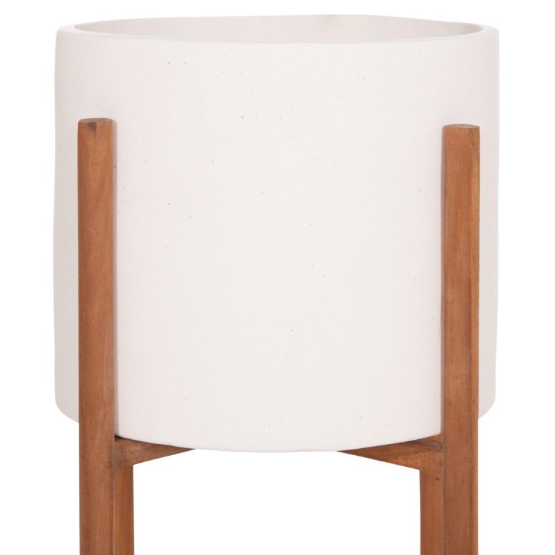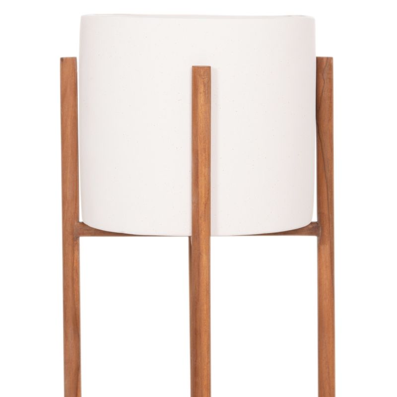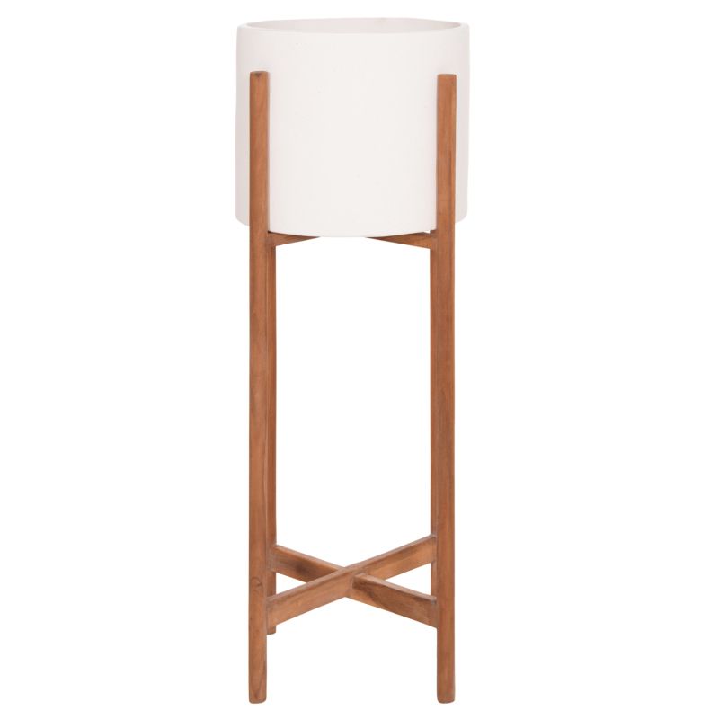 INDOOR POT RENTIL HM4684.02L FIBER CEMENT IN WHITE COLOR--TEAK BASE Φ27x66Hcm