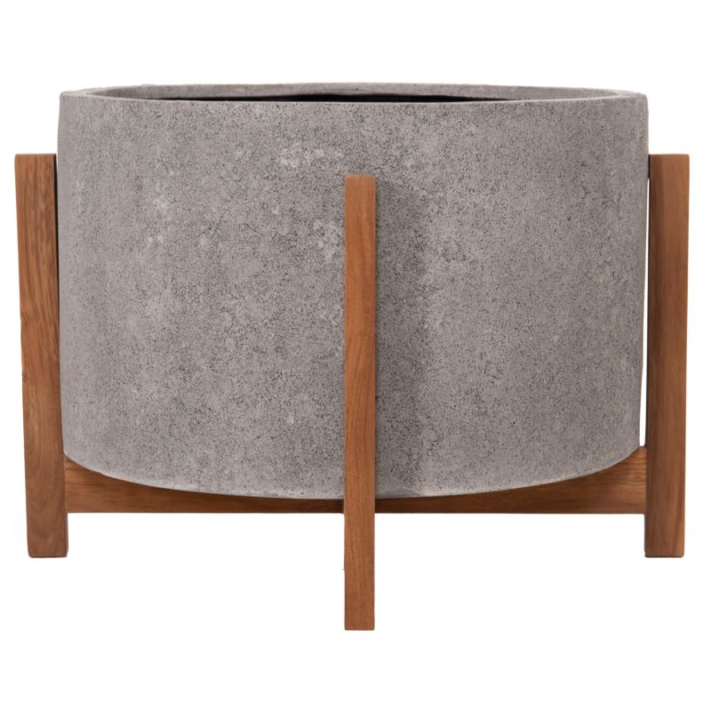 INDOOR POT HOFF HM4682.03L FIBER CEMENT IN GREY--TEAK BASE Φ50x35Hcm