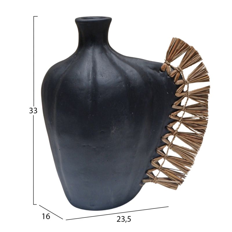 TABLE DECORATIVE VASE JEBB HM4689.01 TERRACOTA IN BLACK & GRASS--23.5x16x33Hcm.
