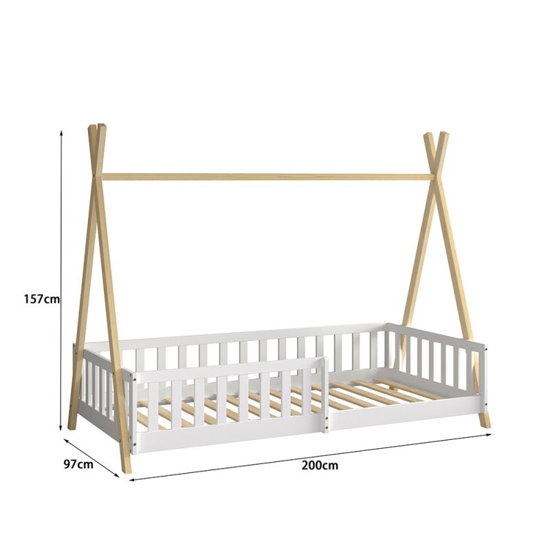 BED FOR KIDS WITH RAILING MUNK HM739.03 t.MONTESSORI-PINE WOOD IN NATURAL-WHITE FOR MATTRESS 190x90cm.