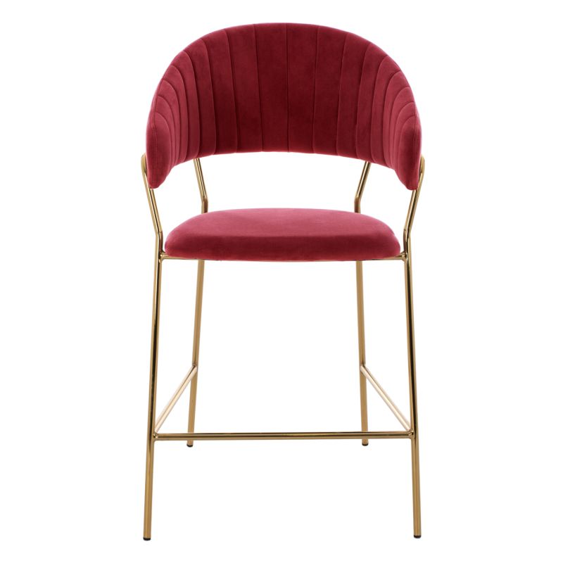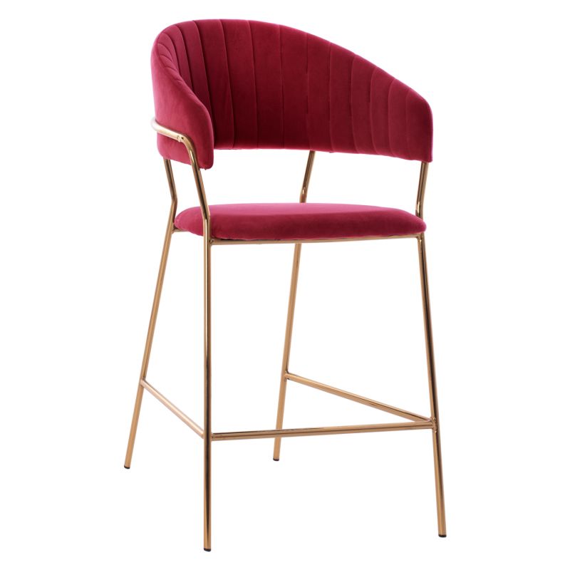 BAR STOOL MED.HEIGHT THEODORE HM8734.06 BURGUNDY RED VELVET--GOLDEN METAL FRAME 60x55x100Hcm.