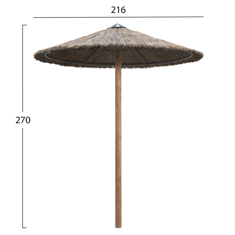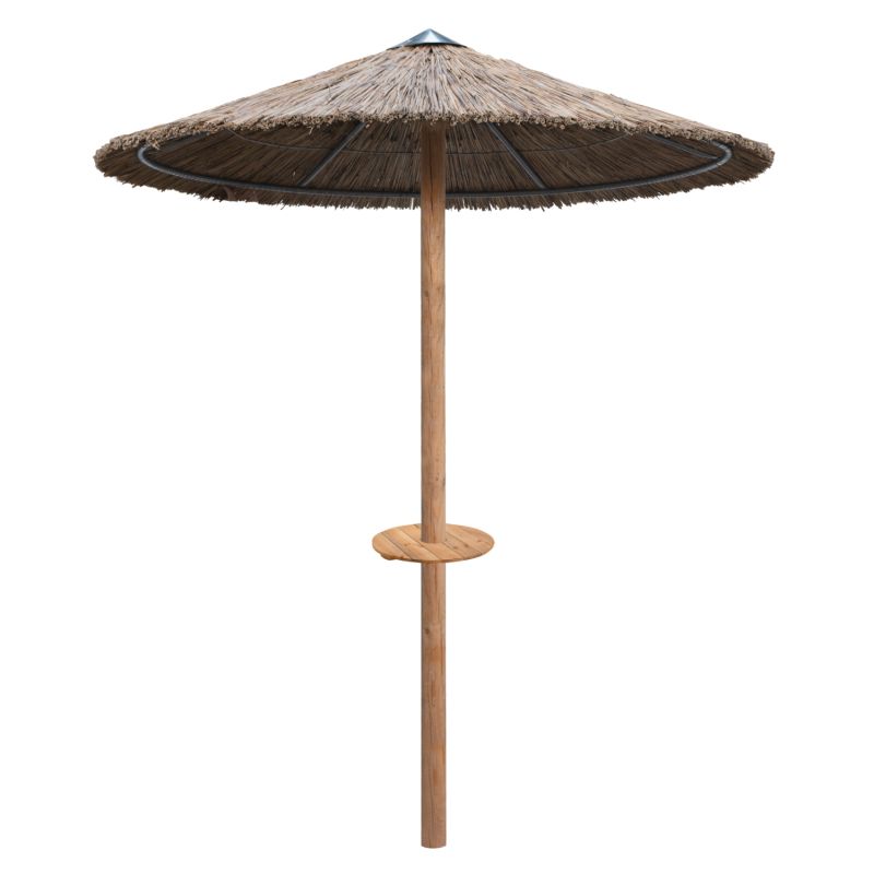 UMBRELLA HM10744 POST WITH STRAW SHADE--PINE WOOD POLE & SIDE TABLE--SUPPORT BEAMS Φ216x270H