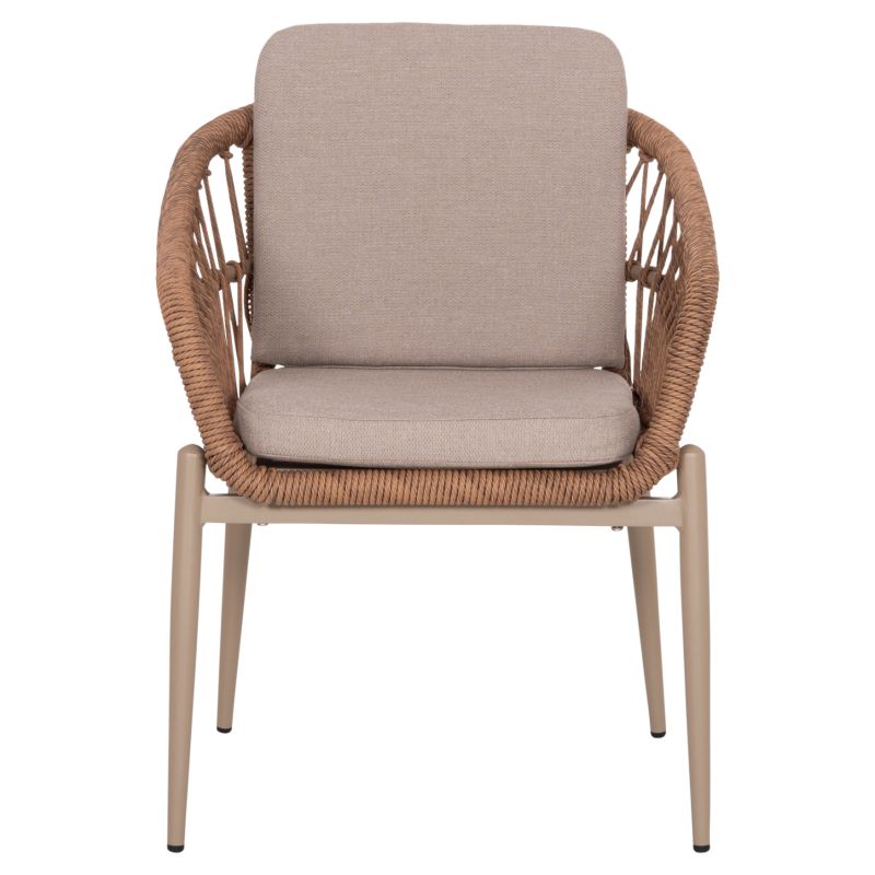 ALUMINUM ARMCHAIR GALDIN HM6272.03 CAPPUCCINO FRAME-BEIGE CUSHIONS--P.E. RATTAN 65x60x76Hcm