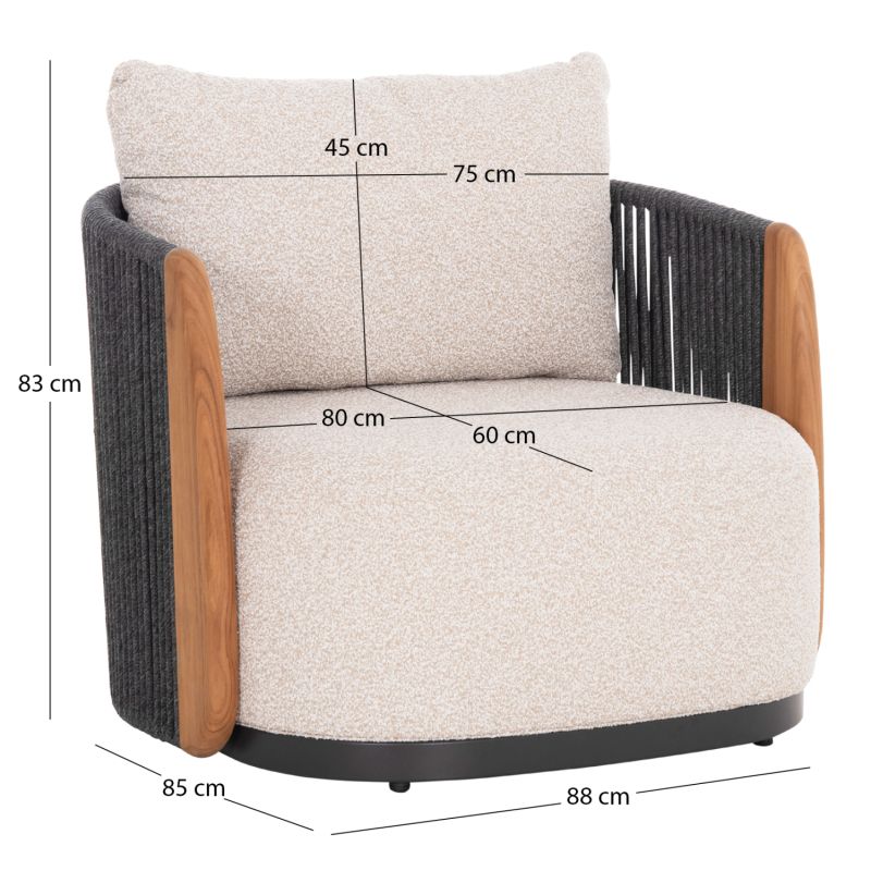 LOUNGE ARMCHAIR AUGUSTUS SM6454.01 GREY ALUMINUM--ROPE--OLEFIN 88x85x83H