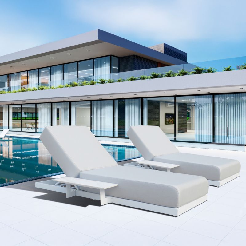 SUNLOUNGER WITH INTEGRATED SIDE TABLE SUBLIME SM6560.02 WHITE ALUMINUM & SINTERED STONE 193x69x26H