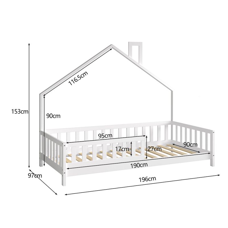 BED FOR KIDS HOUSER HM740.03 t.MONTESSORI SOLID PINE WOOD IN WHITE--FOR 190x90cm.