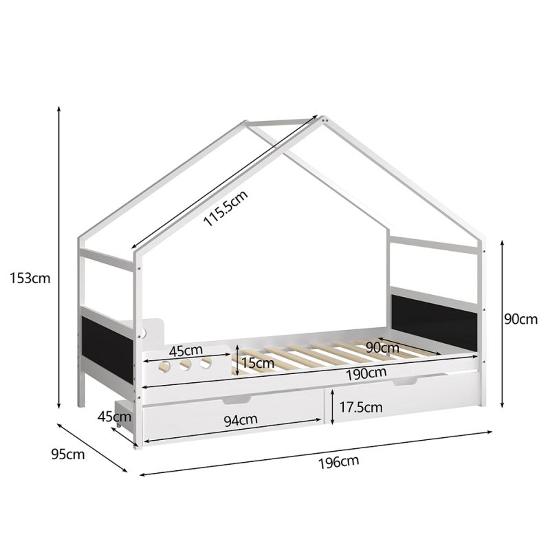 KIDS' BED WITH DRAWERS FB9741.01 t.MONTESSORI--PINE WOOD IN WHITE FOR MATTRESS 190x90cm