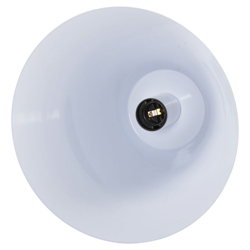 Открийте нашата нова висяща таванна лампа и завършете декорацията си. Това е лампа с БЯЛА конусовидна метална капачка с дървени детайли в горната част на лампата. Естетически, той е завършен с, също, БЯЛ висящ кабел и бяла таванна основа и е най-новата тенденция в таванните светлини.