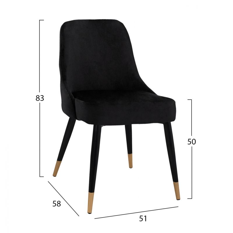 Трапезен стол Serenity HM8527.04 Velvet Black с метална конструкция 52x61x83см