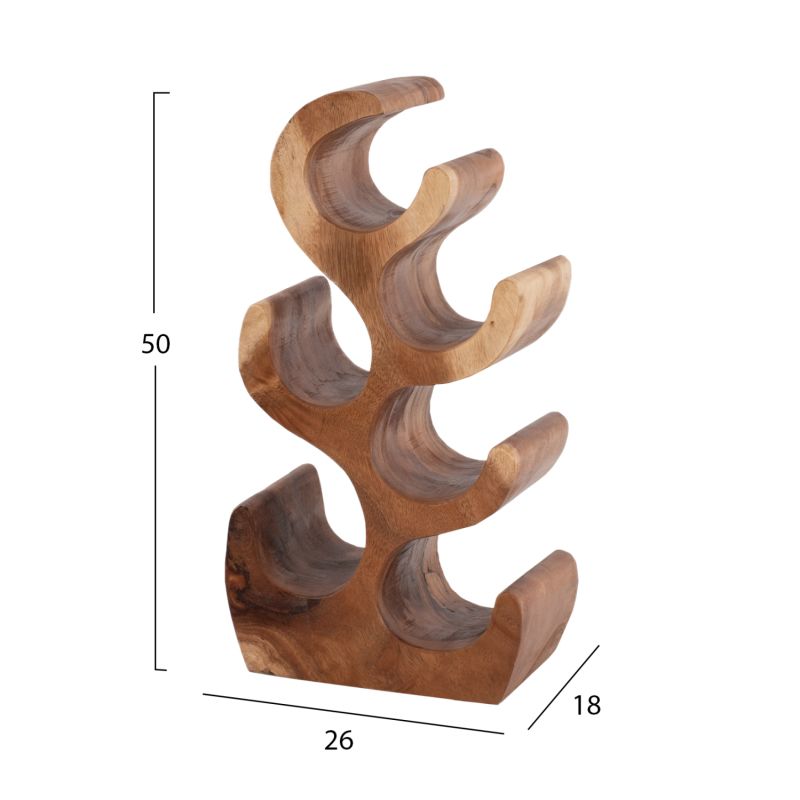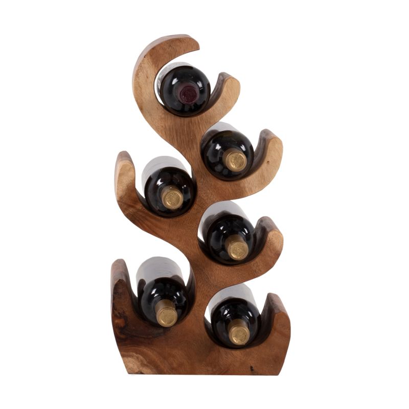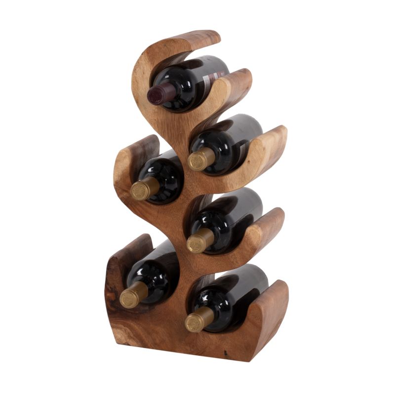 Поставката за бутилки ΗΜ9485 е полезна за всяко пространство. Изработена е от едно цяло парче дърво във вертикална подредба, майсторски издълбана, за да осигури 6 места за поставяне на бутилки. Това е красиво парче, което е както елемент на декорация благодарение на начина, по който е направено, така и практичен предмет за организиране и съхранение на бутилки.