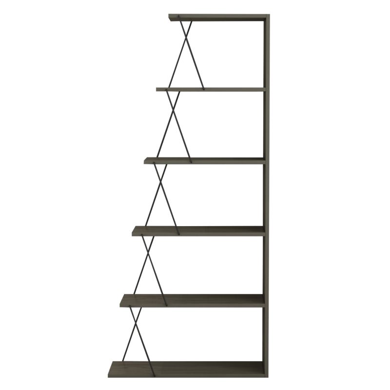 Етажерка MINI TARS е модерно предложение за вашия офис или където искате да поставите библиотека. Разполага с 4 стълбистообразни рафта за поставяне, които се поддържат от метални пръти плюс рафт, който е долната повърхност на библиотеката, а размерите му го правят удобен за много пространства. Цветът му е МАСЛИНЕНО СИВ с ЧЕРНИ пръти.