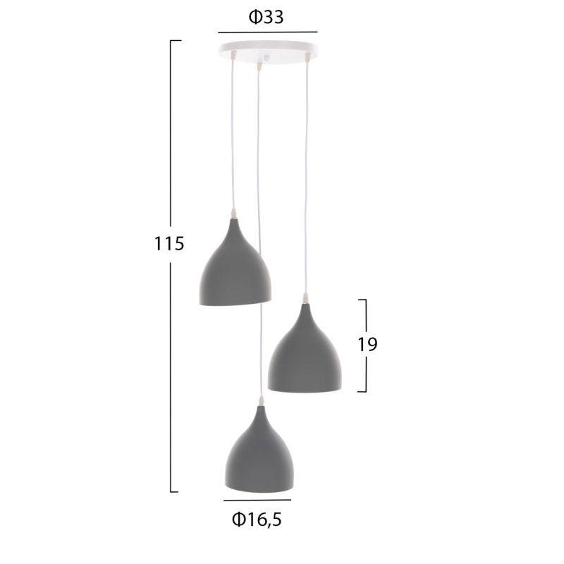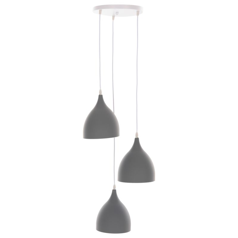 Открийте нашата нова 3-светлинна висяща лампа за таван и не се колебайте да я включите във вашия декор. Неутралният СИВ метал на цялата лампа и 3-те светлини на различни височини ще придадат свеж вид и усещане на пространството. Идеален както за дома, така и за бизнес помещения.