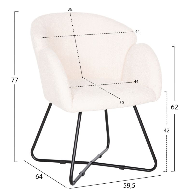 КРЕСЛО HARNIS HM9603.06 ЕКРЮ БУКЛЕ-ЧЕРНА МЕТАЛНА БАЗА 59.5x64x77 см.