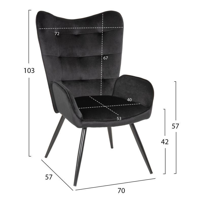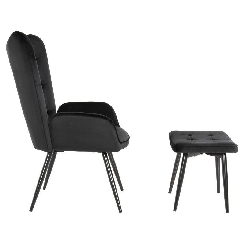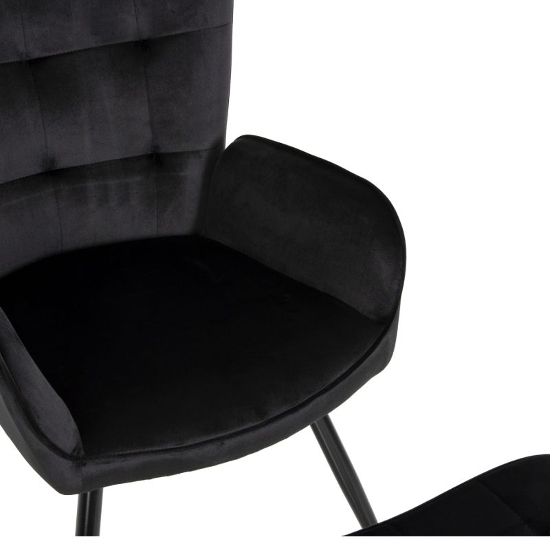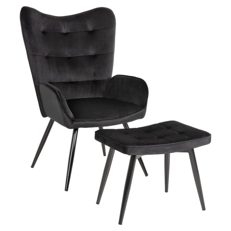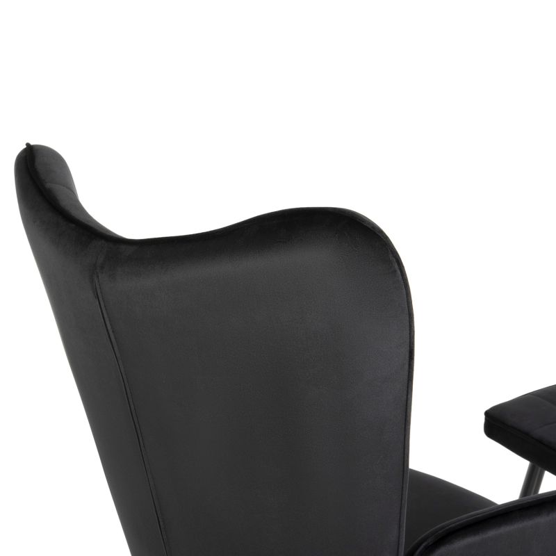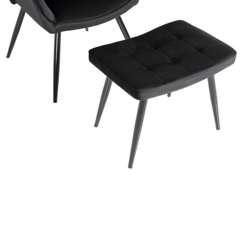 КРЕСЛО С ТАБУРКА ЗА КРАКА CRAWLEY HM8918.04 ЧЕРЕН ВЛЕВЕТ-МЕТАЛНИ КРАКА 70x57x103Hcm.