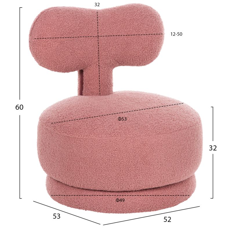 ТАБУРЕТКА С ВЪРТЯЩА СЕ ОБЛЕГАЛКА KRIVIO HM9775.02 ПРАШЕН РОЗОВ ПЛАТ ОТ БУКЛЕ 52x53x60Hcm.
