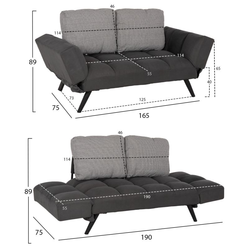 3-местен полиморфен диван със сив плат, който става на легло, когато ръцете "паднат". Размери: 190x75x89Y см.