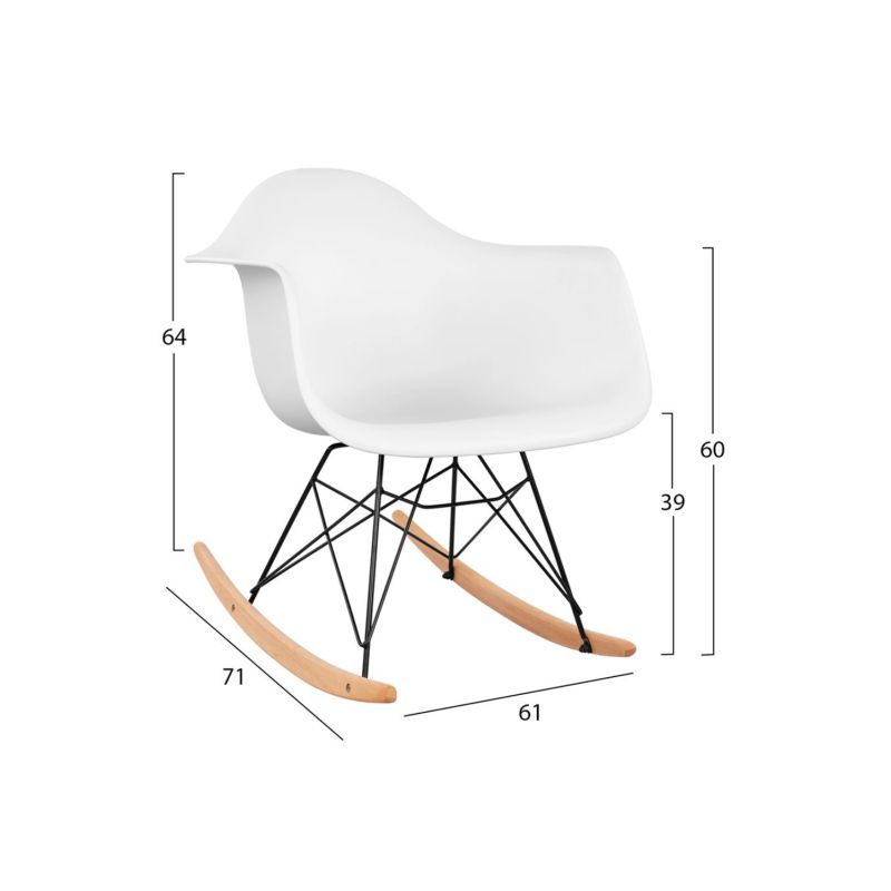 Люлеещо се кресло в комбинация дърво-метал-полипропилен в бяло-черни цветове. Размери: 61x71x64H см.