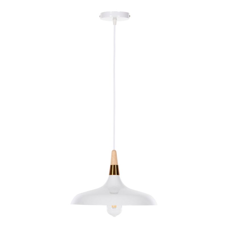 HM4081 е нова и елегантна едносветлинна лампа, която ще завърши вашата декорация. Този пендел има висящ кабел и капачка в БЯЛ цвят с дървени детайли в горната част, докато цялата конструкция е вечна и елегантна.