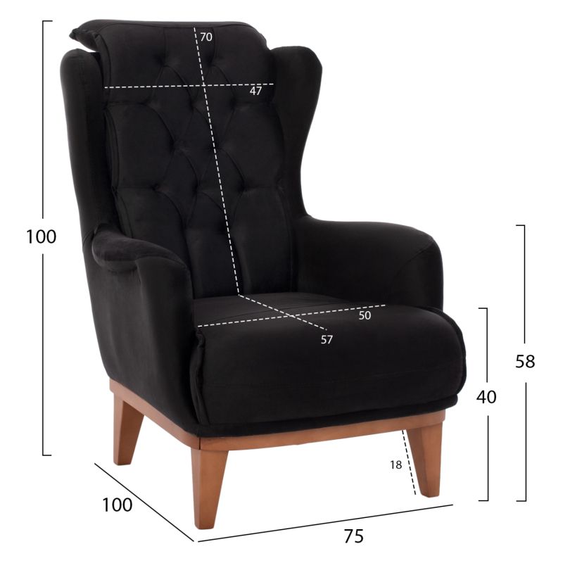 HM9313.01 Черно кадифено кресло BENNINGTON, 75x100x100см