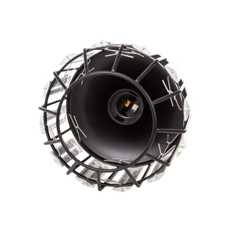 Цялото осветително тяло е изработено от метал със стъклени детайли.